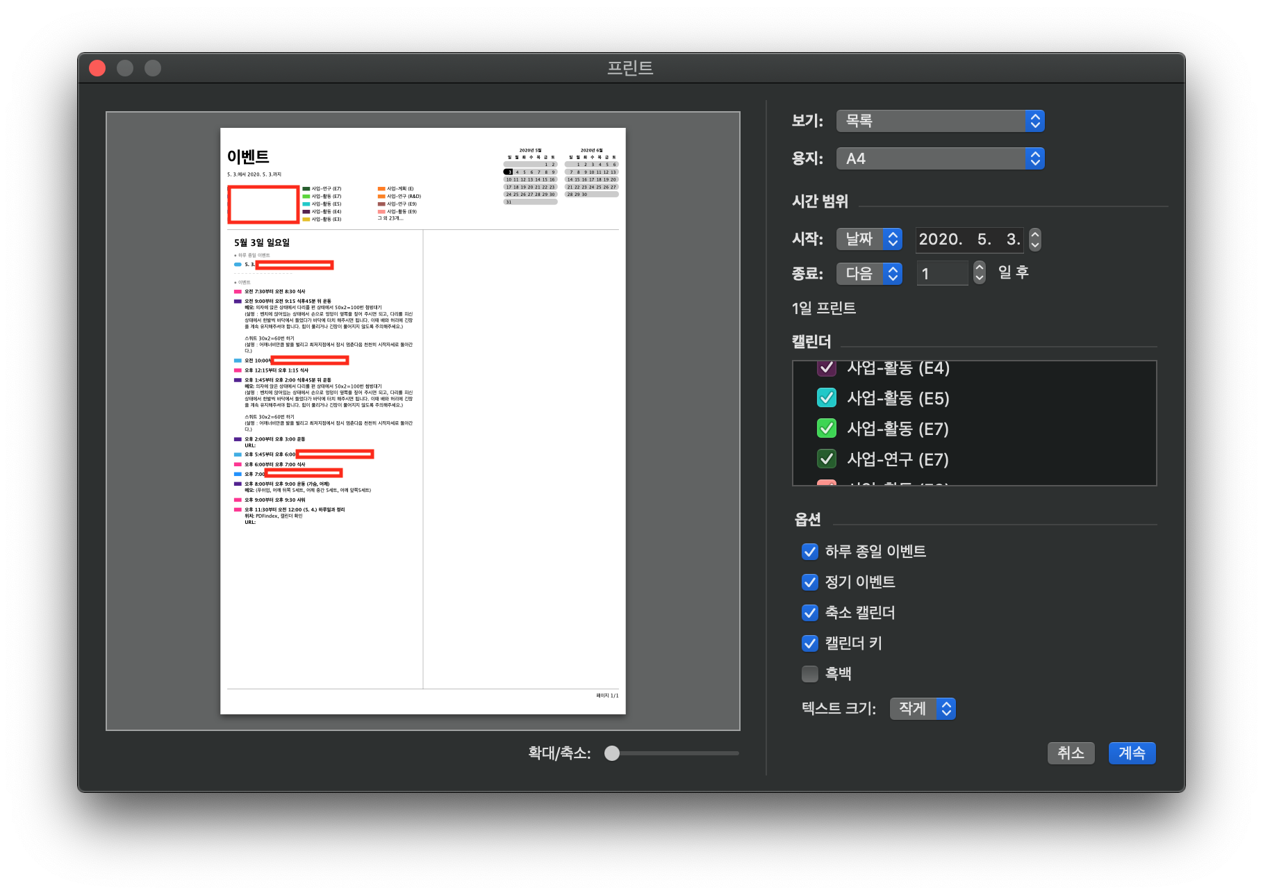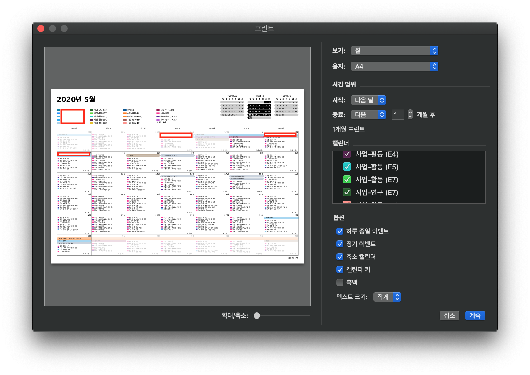 맥용 기본 캘린더를 프린트해서 사용하기 - 아날로그 방식으로 일정관리가 편할 때